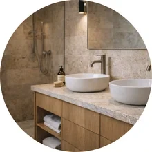 Asortyment Domelia obejmuje wykończenia do łazienek, kuchni i salonów, a także tarasów, ogrodów, ciągów pieszych i elewacji. Stawiamy na naturalne piękno kamienia oraz odporność na zmienne warunki użytkowania w polskim klimacie.