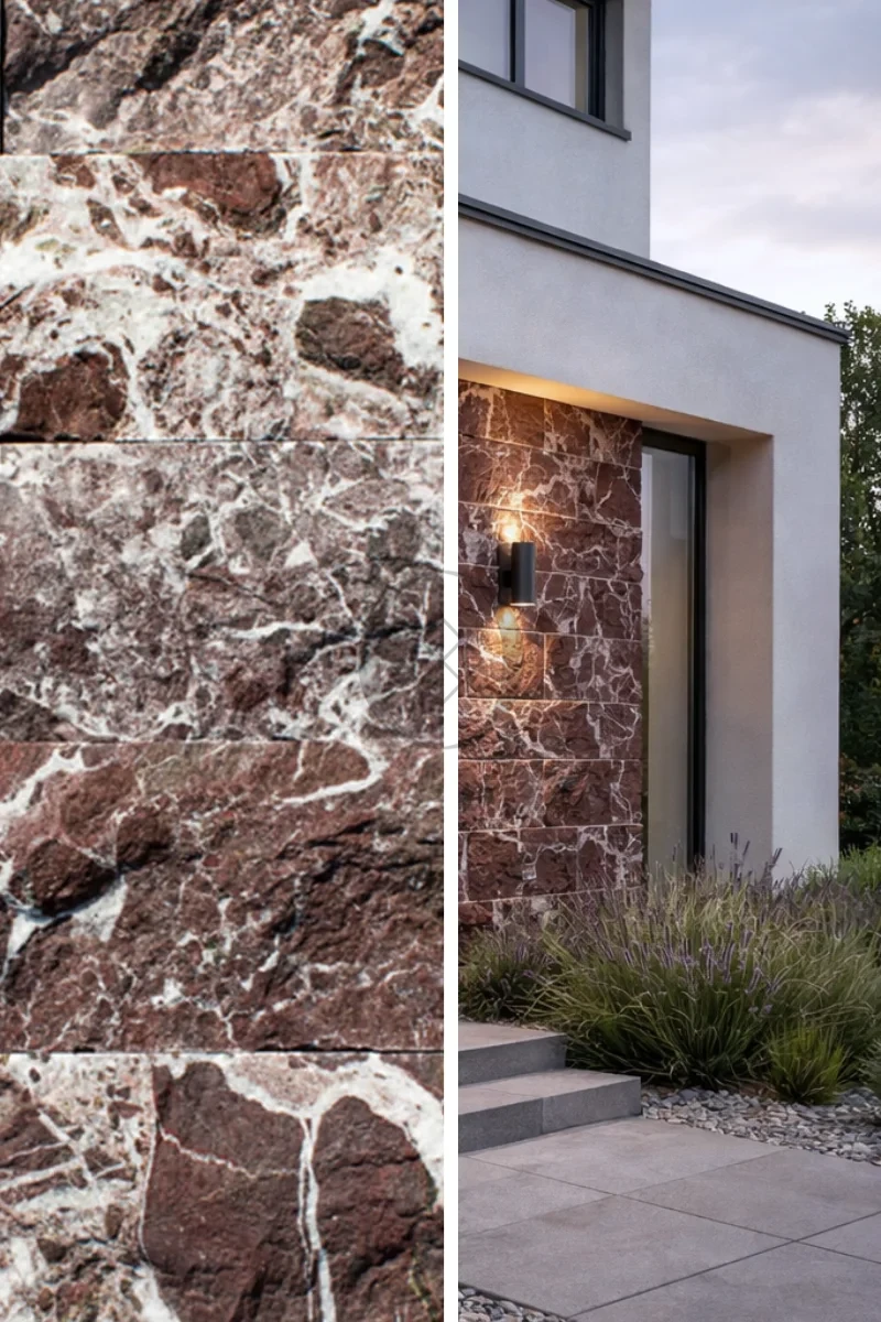 Kamień elewacyjny marmur Rosso Levanto split łupany