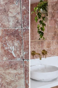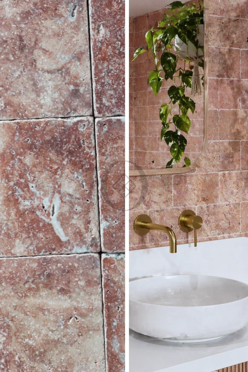 Kamień dekoracyjny Trawertyn Pink Bębnowany 7,5x15x1 cm