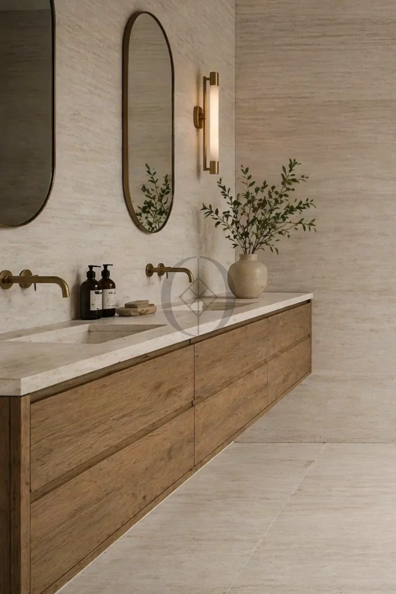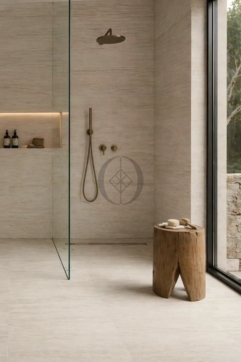 Trawertyn Bianco Classic Vein Cut szczotkowany 30,5x61x1,2 cm to jasna płytka kamienna o liniowym rysunku, idealna na podłogi i ściany we wnętrzach w stylu nowoczesnym i minimalistycznym.