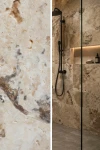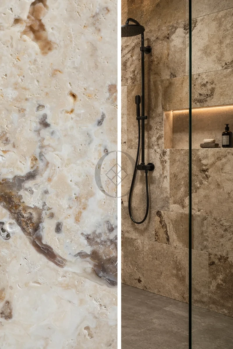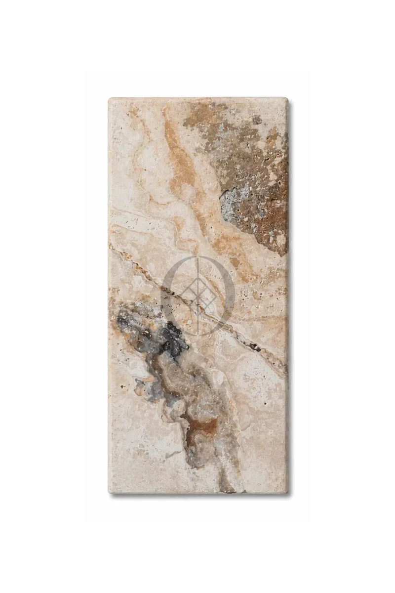 Trawertyn Philadelphia szczotkowany bębnowany 20,3x40,6x1,2 cm to naturalna płytka kamienna o ciepłej kolorystyce i delikatnie strukturalnej powierzchni, idealna do wnętrz i dekoracyjnych aranżacji ścian oraz podłóg.