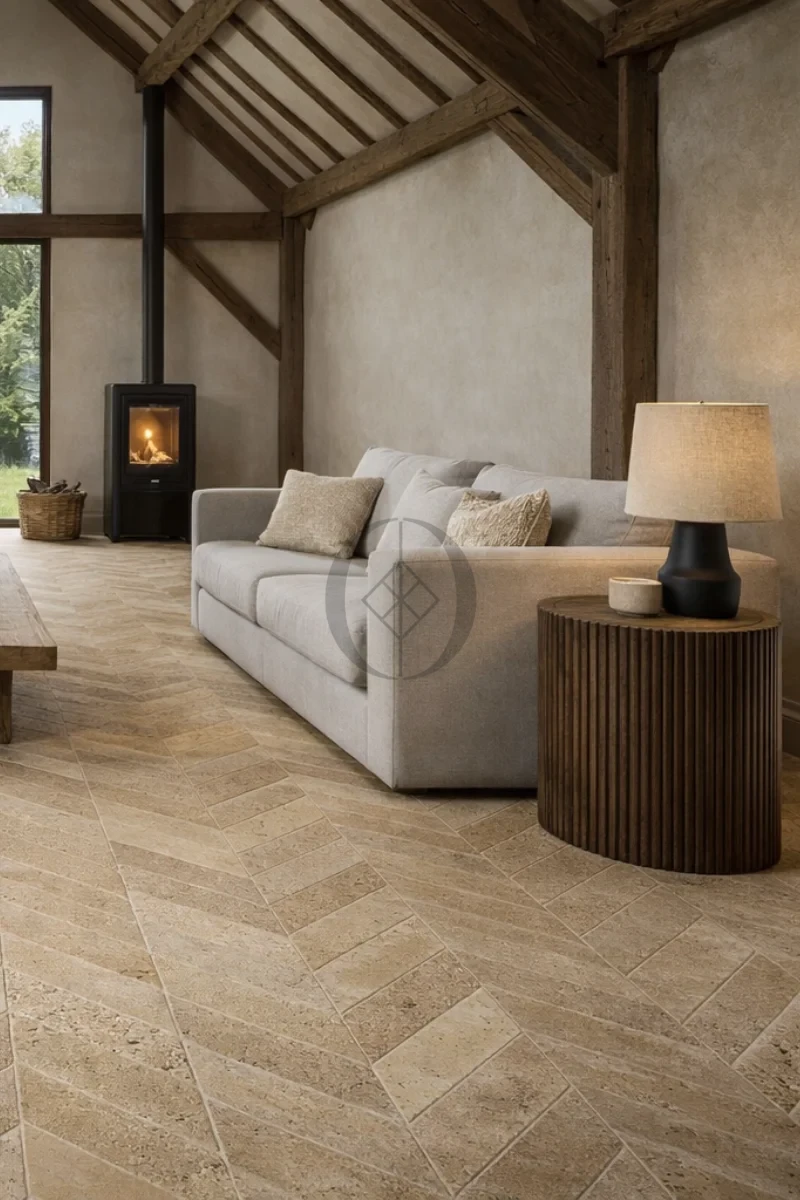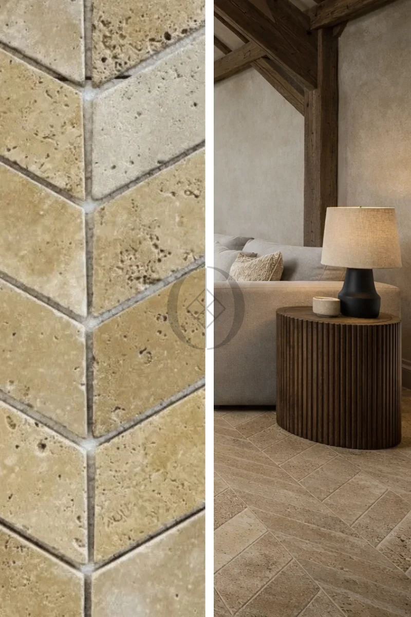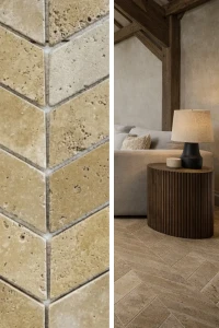 Trawertyn Light Bębnowany Chevron 7,5x30,5x1 cm