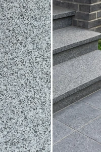 Podstopnica granitowa G654 płomieniowana – trwały i estetyczny element wykończeniowy do schodów zewnętrznych i wewnętrznych.
