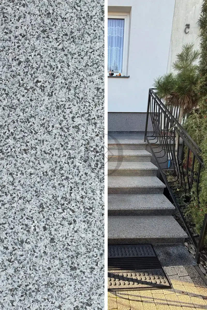 Schodek granitowy G654 New – ciemnoszary kamień z zaokrągloną krawędzią Bullnose, idealny jako stopnica i obrzeże basenowe.