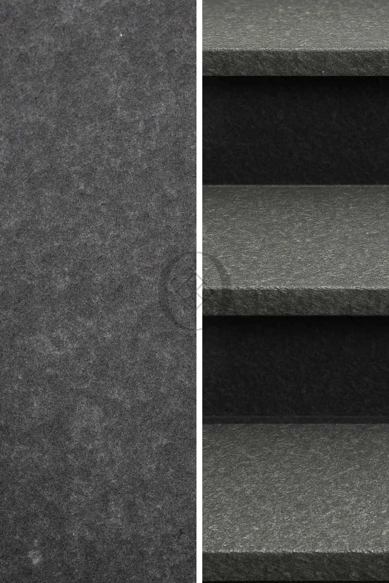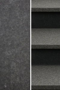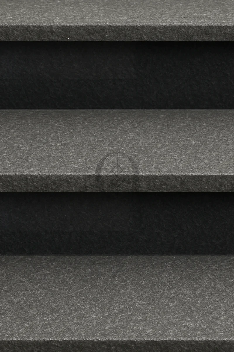 Stopnica bazaltowa G690 Bazalt Black – antypoślizgowa powierzchnia płomieniowana do zastosowań zewnętrznych i intensywnie użytkowanych schodów.