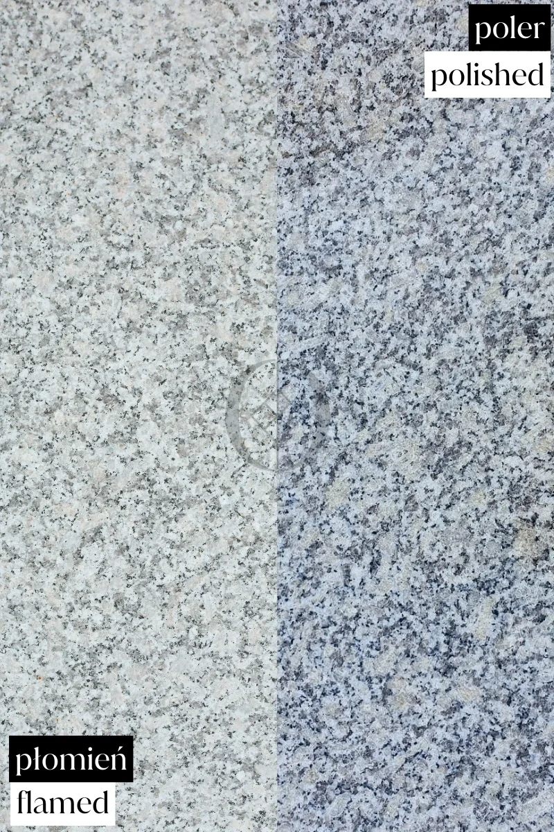 - Stopnica płomieniowana 150x33x2 cm – wykończona w technologii płomieniowania, co nadaje jej naturalną chropowatość i zapewnia antypoślizgowe bezpieczeństwo.