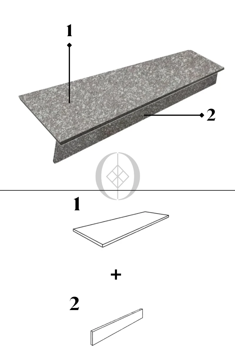 Zestaw Stopnica Płomieniowana + Podstopień Polerowany Granitowy G664 150x33x2 / 150x15x2