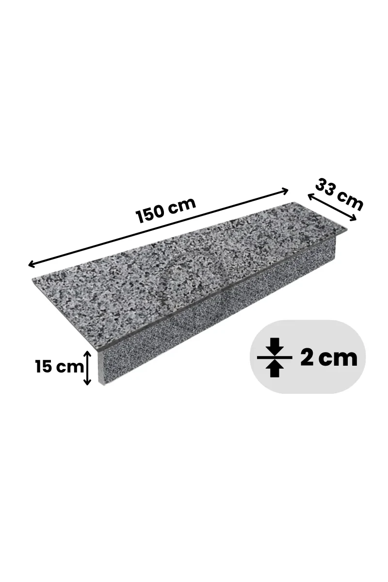 - Podstopnica granitowa płomieniowana – 150x15x2 cm