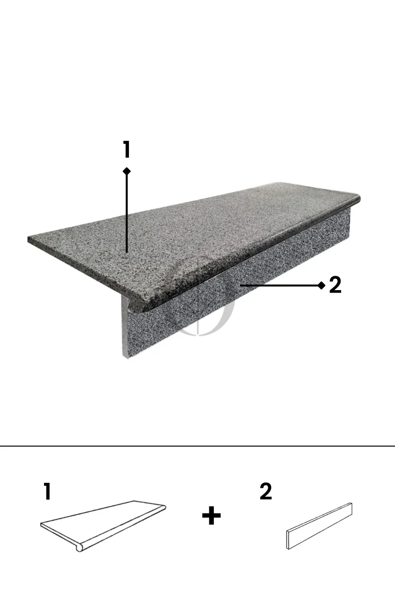 Zestaw Stopnica z podstopniem Bullnose G654 Dark Grey 135x35x2 cm + 135x15 cm
