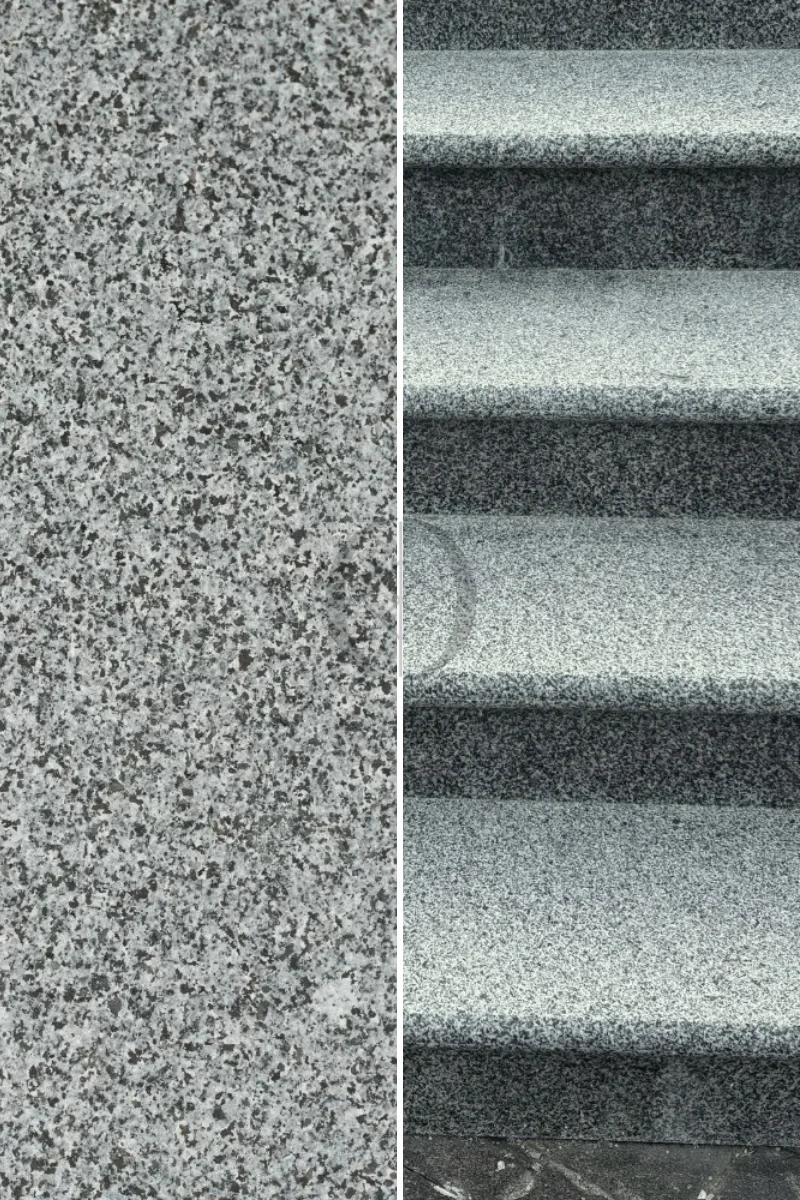 Gotowy zestaw schodowy z naturalnego granitu G654 Dark Grey, przeznaczony do wykonania trwałych i estetycznych stopni – zarówno na zewnątrz, jak i wewnątrz budynku. Połączenie płomieniowanej stopnicy z polerowaną podstopnicą zapewnia idealny balans między bezpieczeństwem użytkowania a eleganckim wyglądem.