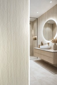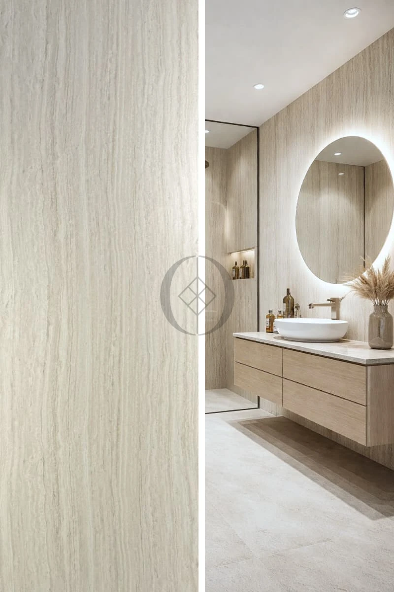 Płyta węglowa WPC trawertyn kremowy matowy 280x110 cm – lekka i wodoodporna okładzina ścienna do nowoczesnych wnętrz w stylu minimalistycznym i naturalnym.